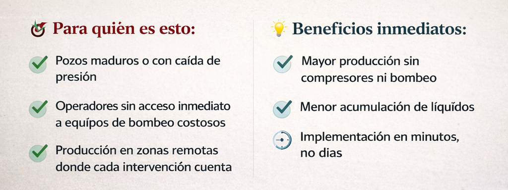 Las Barras Espumantes son el metodo más simple, rápido y económico para revivir producción sin intervención costosa.